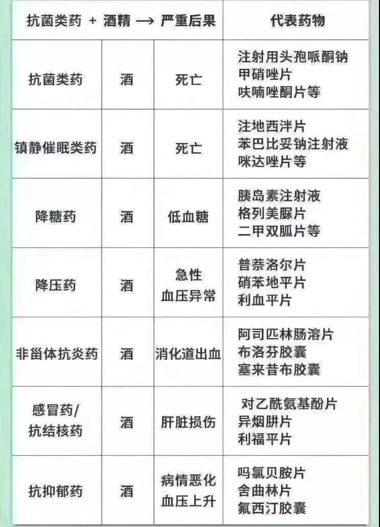 除了头孢,降糖药、降压药、感冒药、安眠药、肠胃炎药、抗过敏药、抗心绞痛药等都会和酒精发生一些化学反应。